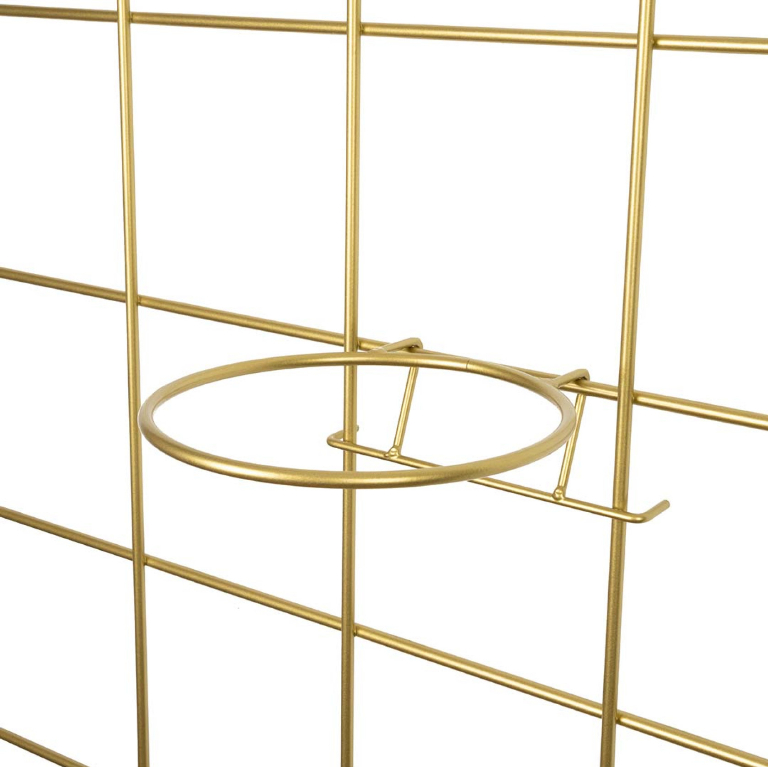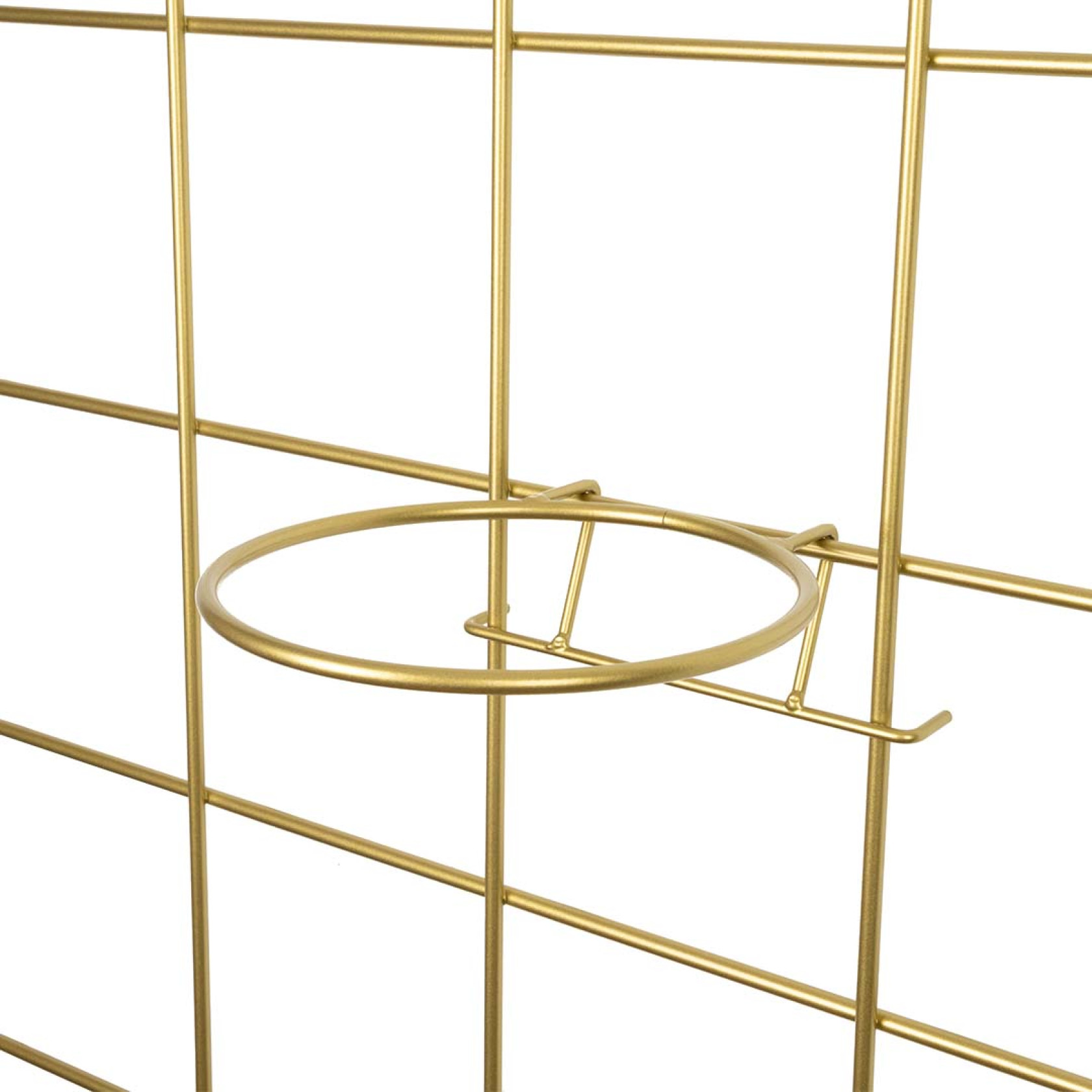 Dzięki uchwytom montażowym element jest oddalony od ściany (krata wisi na hakach) co sprawia, że kwietnik zyskuje bardziej przestrzenny charakter.