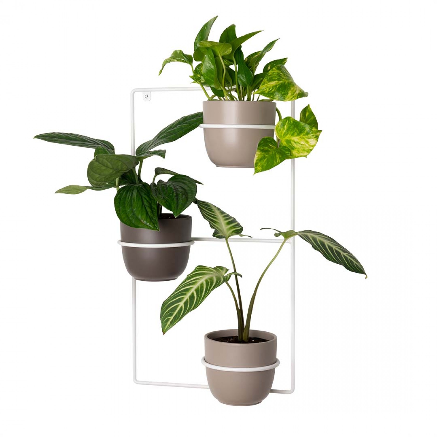 Zebrina to prosty kwietnik na 3 doniczki. Wyróżnia go ciekawy design i minimalistyczny charakter. Znakomicie sprawdzi się zarówno w nowoczesnych wnętrzach, jak i w klasycznych aranżacjach. Dzięki Zebrinie możesz stworzyć na swojej ścianie wspaniałą kompozycję 3 roślin, pięknie eksponując je w prostokątnej ramie.
