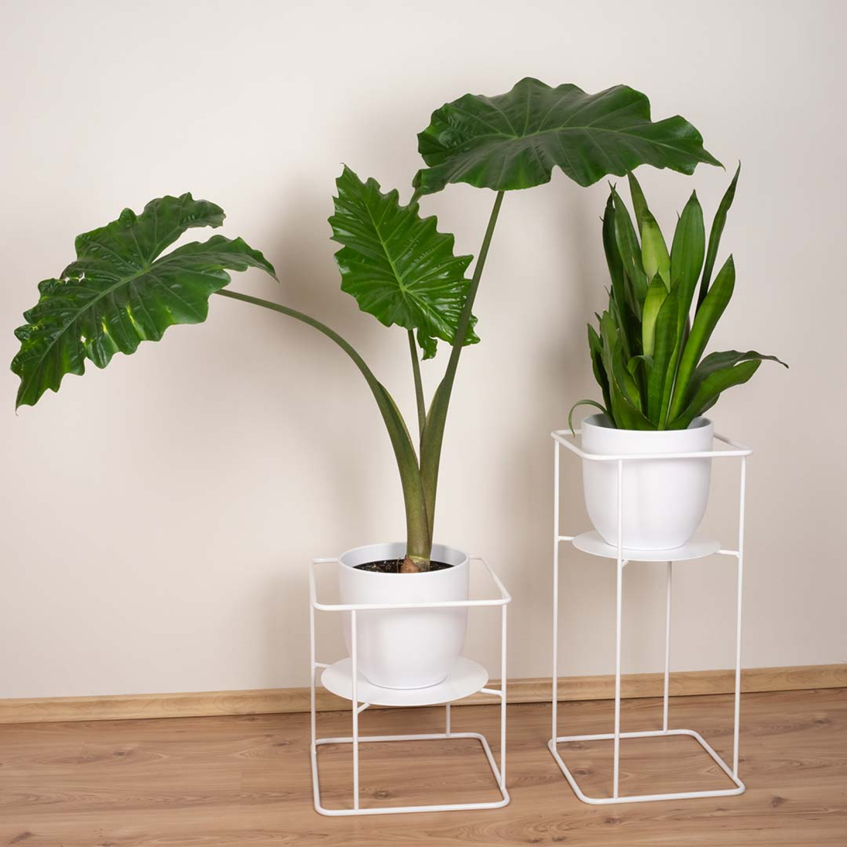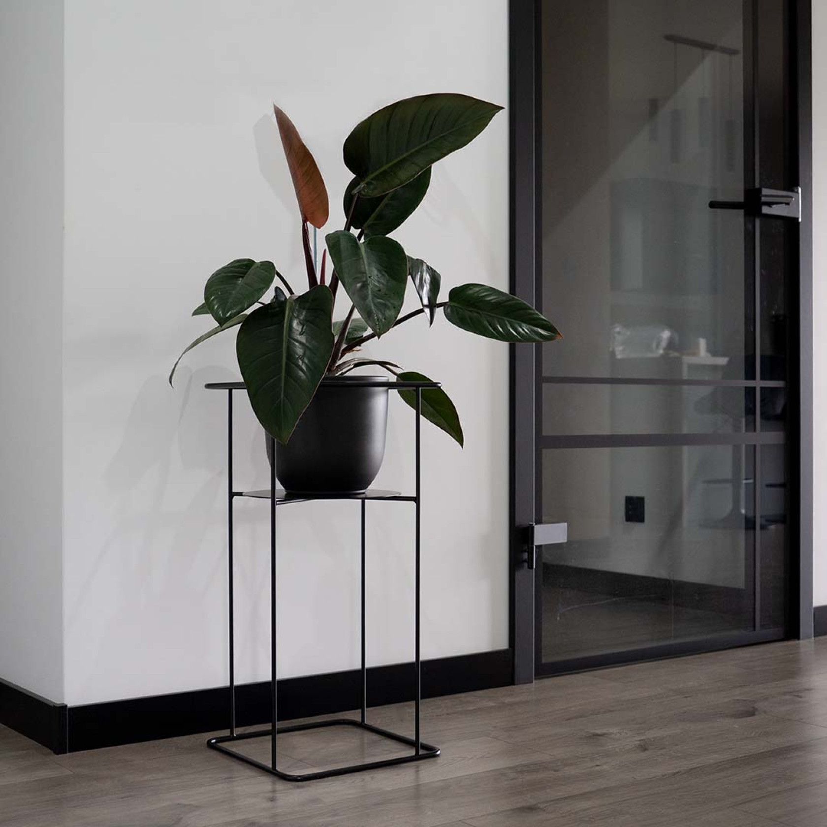 Kwietnik Jaskier to nowoczesny metalowy stojak na kwiaty. Idealny do ekspozycji dużych roślin. Cechy charakterystyczne kwietnika to ręcznie gięta rama, precyzyjnie cięta blacha w kształcie koła oraz nietypowo rozmieszczone pionowe elementy. Kwietnik doskonale prezentuje się pojedynczo oraz w zestawie. Występuje w dwóch rozmiarach. Jaskier Niski - jest niższy, szerszy i pomieści ogromne okazy. Jaskier Wysoki - jest wyższy, smuklejszy, podniesie i dobrze wyeksponuje duże rośliny.